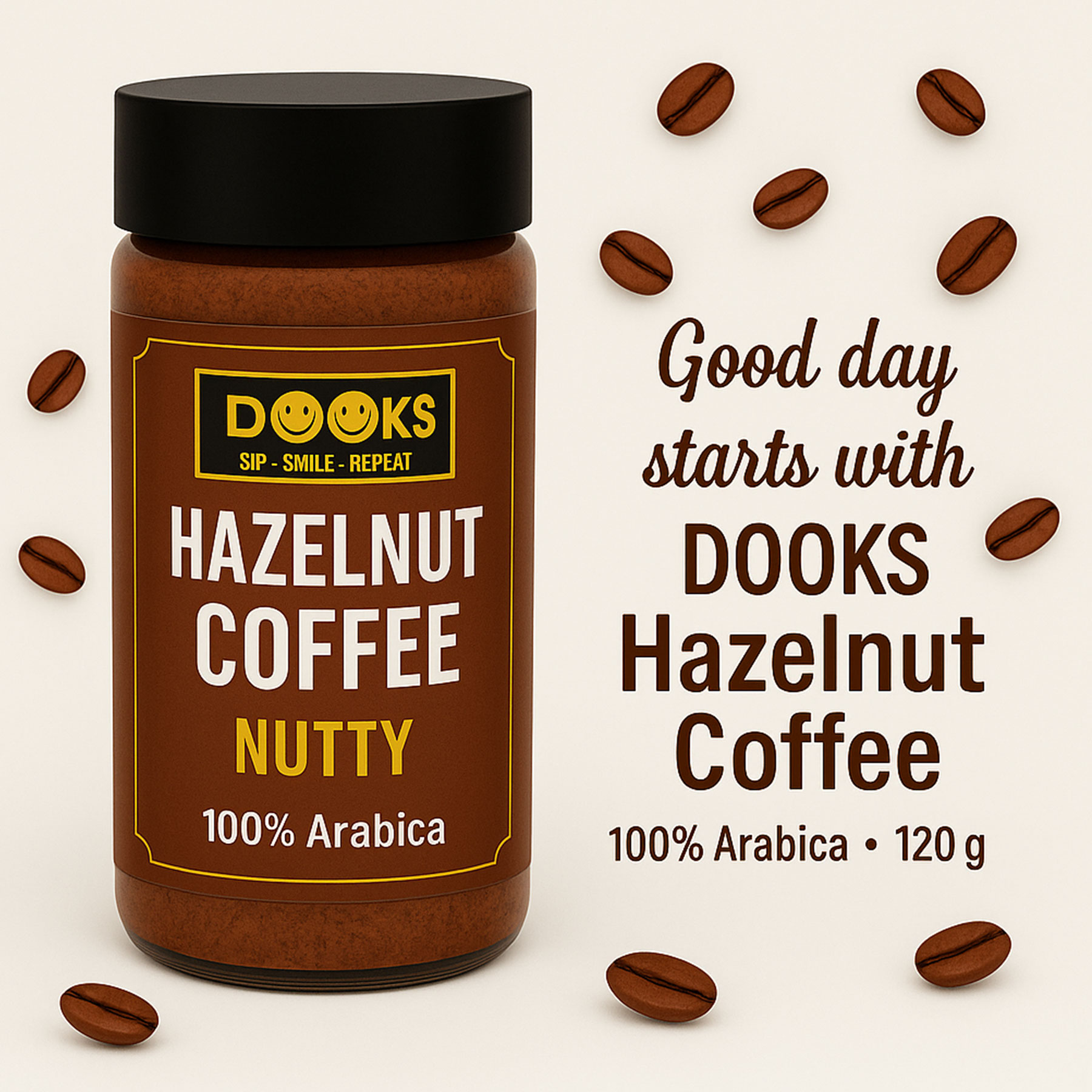 Dooks Premium Hazelnut Instant Coffee – 120g